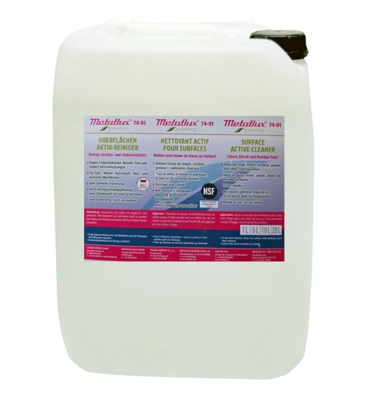 - doporučený pro následné čištění povrchů po použití speciálních čističů Metaflux 74-92 Bio-Clean a 74-96 Green Hybrid Čistič