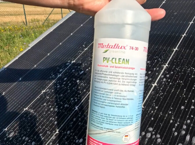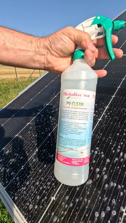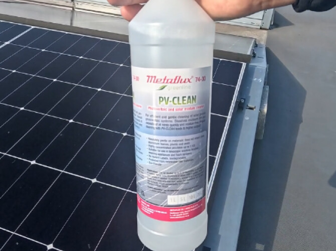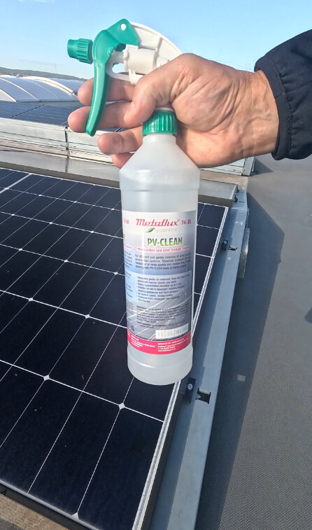 Metaflux 74-30 PV CLEAN je speciálně vyvinutý čisticí koncentrát pro údržbu fotovoltaických a solárních modulů. Účinně odstraňuje i odolné nečistoty — jako prach, pyl, oleje, saze, ptačí trus a další usazeniny — bez zanechání zbytků, což zajišťuje vyšší účinnost panelů. Je zcela šetrný k materiálům — nepoškozuje sklo, hliníkové rámy, plasty ani těsnění. Produkt je vysoce koncentrovaný (ředitelný až 1:10 podle stupně znečištění) a lze jej aplikovat pomocí postřiku, pěnových rozprašovačů nebo teleskopických kartáčů. Navíc je ekologicky šetrný — biologicky odbouratelný, bez nutnosti označení nebezpečnosti (GHS) a s tenzidy z obnovitelných zdrojů.