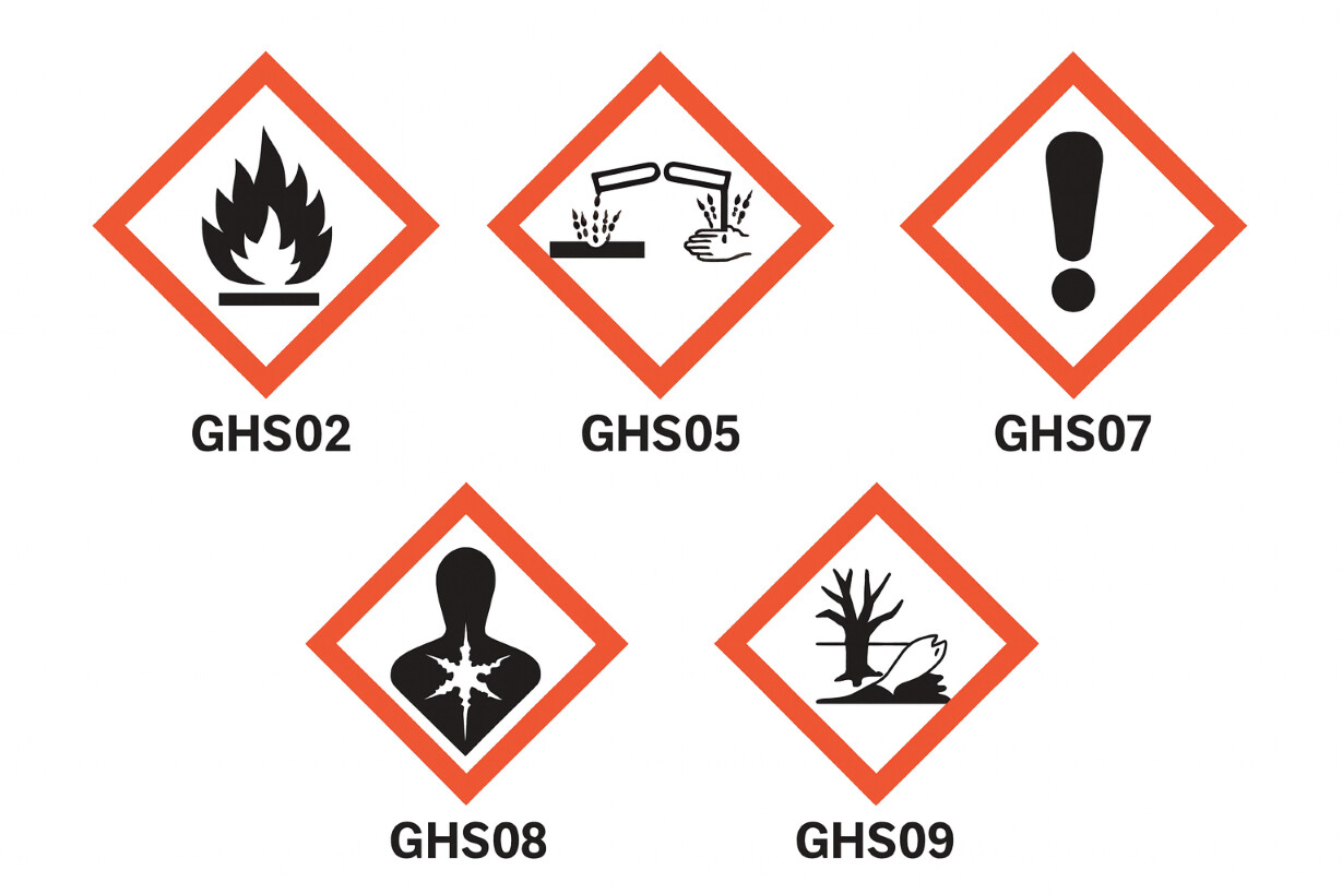 GHS symboly a věty upozorňují na možné riziko při používání produktu (např. hořlavost, dráždivost nebo nebezpečí pro životní prostředí). Jejich cílem je poskytnout jasné a jednotné informace o bezpečném zacházení.
