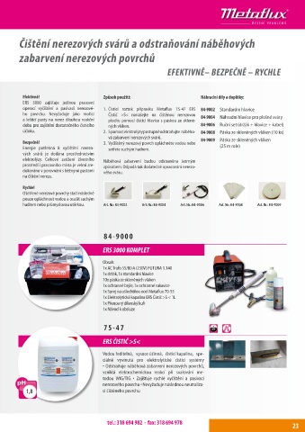 operací vyčištění a pasivaci nerezové- 1. Čisticí roztok přípravku Metaflux 75-47 ERS 84-9002 Standardní hlavice